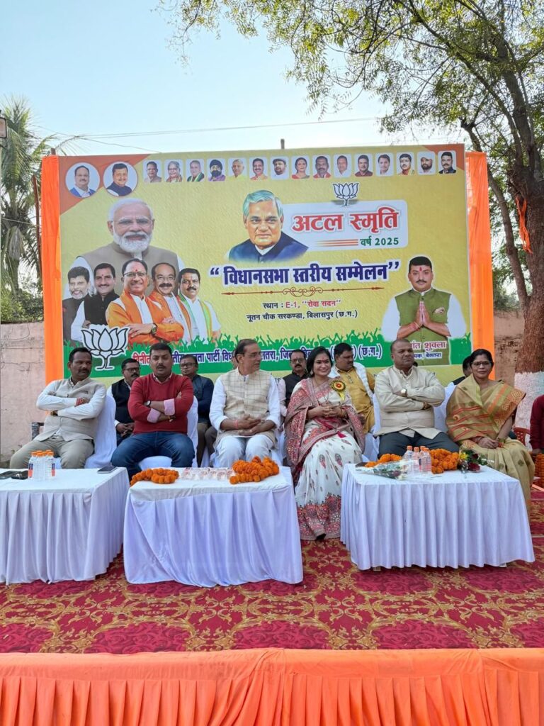 अटल स्मृति वर्ष 2025 के उपलक्ष्य में विधानसभा बेलतरा में विधानसभा स्तरीय कार्यकर्ता सम्मेलन का आयोजन किया गया जिसमे बतौर मुख्य वक्ता विधायक सुशांत शुक्ला छत्तीसगढ़ राज्य लघु वनोपज बोर्ड के उपाध्यक्ष यज्ञदत्त शर्मा छत्तीसगढ़ सिनेमा विकास निगम के अध्यक्ष मोना सेन जिला पंचायत अध्यक्ष राजेश सूर्यवंशी एवं बिलासपुर जिला ग्रामीण के अध्यक्ष मोहित जायसवाल शामिल हुए सर्वप्रथम भारत माता पण्डित दीनदयाल उपाध्याय व डॉ श्यामा प्रसाद मुखर्जी की प्रतिमा पर दीप प्रज्वलित कर कार्यक्रम का शुभारंभ किया गया स्वर्गीय अटल बिहारी वाजपेयी जी के जीवन वृत पर