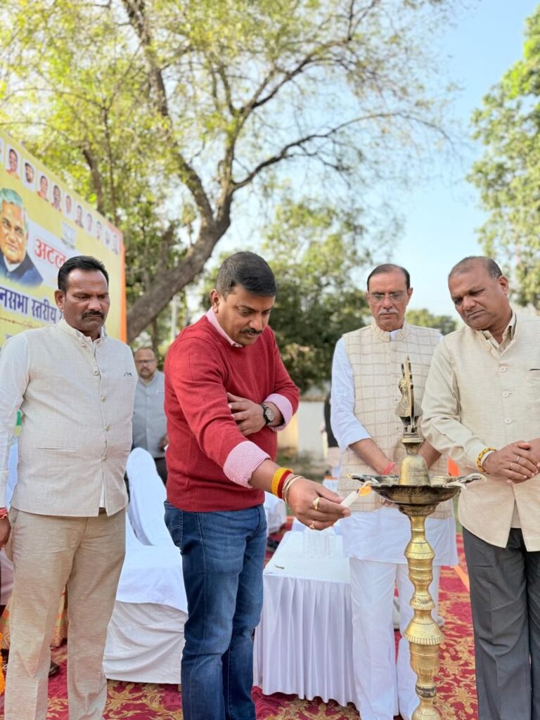 प्रकाश डालते हुए विधायक सुशांत शुक्ला ने कहा कि अटल बिहारी वाजपेयी जी ने राजनीतिक विद्वेष से परे जाकर छत्तीसगढ़ राज्य की स्थापना की वे जानते थे कि राज्य स्थापना पश्चात यहां कांग्रेस की बनेगी लेकिन महादेव की तरह स्वयं विषपान कर छत्तीसगढ़ वासियों के हित मे फैसला लिया आज उसके परिणीति यह हुई कि हमारे जीवन मे व्यापक बदलाव हुए हैं हमारी सामाजिक और आर्थिक दशा मे आमूल चूल परिवर्तन देखने को मिल रहा है राज्य स्थापना के बाद छत्तीसगढ़ ने विकास की ऐसी रफ़्तार पकडी की देश के दूसरे राज्य पीछे रह गए उन्होंने छत्तीसगढ़ की अस्मिता को जगाया आज उनकी सौवी जयंती पर हमारा यह समृद्ध राज्य 25 वर्ष की तरूणाई को प्राप्त कर लिया है श्री सुशांत शुक्ला ने अपने उदबोधन जारी रखते हुए कहा कि एक सफल प्रधानमंत्री के रूप में उनके कार्यालय को इतिहास सैदव याद करेगी प्रधानमंत्री सड़क योजना देश की अर्थव्यवस्था को गति देने एक क्रांतिकारी कदम सिद्ध हुआ इस योजना ने सुदूर ग्रामीण क्षेत्रों को मुख्यधारा से जोड़ा दिया आवागमन की सुविधा से आम जन जीवन की आर्थिक दशा में व्यापक बदलाव हुए स्वर्णिम चतुर्भुज जैसी महत्वकांक्षी योजना से देश के महानगरों की बीच कनेक्टिविटी तैयार हुई इतना ही नही उन्होंने पोखरण में परमाणु विस्फोट कर भारत की सामरिक शक्ति को मजबूत किया सभा को यज्ञदत्त शर्मा और मोना सेन ने भी सम्बोधित किया कार्यक्रम का संचालन जिला मंत्री मीडिया प्रभारी प्रणव शर्मा ने किया