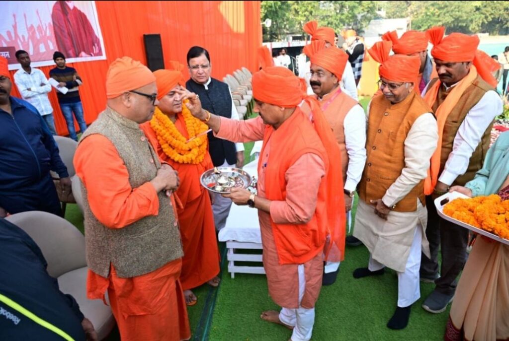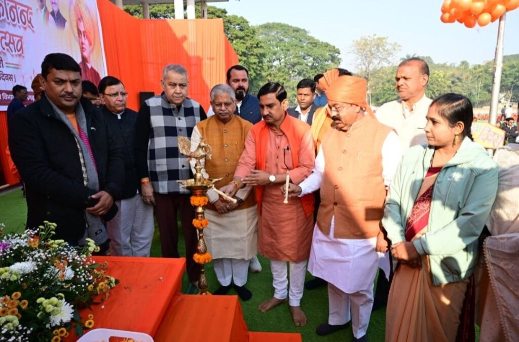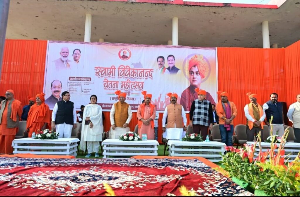 बिलासपुर, 12 जनवरी,2026/उप मुख्यमंत्री सह खेल मंत्री अरुण साव के मार्गदर्शन में आज स्वामी विवेकानंद जयंती राष्ट्रीय युवा महोत्सव पर बिलासपुर शहर ने इतिहास रचा है। खेल एवं युवा कल्याण विभाग द्वारा पुलिस ग्राउंड में आयोजित स्वामी विवेकानंद चेतना महोत्सव में 1500 बच्चों ने स्वामी विवेकानंद जी की वेशभूषा में सामूहिक रूप से पूर्ण वंदेमातरम का गायन किया। इस अवसर पर डिप्टी सीएम अरुण साव ने 1500 बच्चों को नशामुक्ति की शपथ दिलाई। और दूसरों को भी नशा के खिलाफ जागरूक करने का संकल्प लिया। श्री अरुण साव ने इस विश्व रिकॉर्ड के लिए गोल्डन बुक ऑफ वर्ल्ड रिकॉर्ड का प्रमाण पत्र प्राप्त किया।