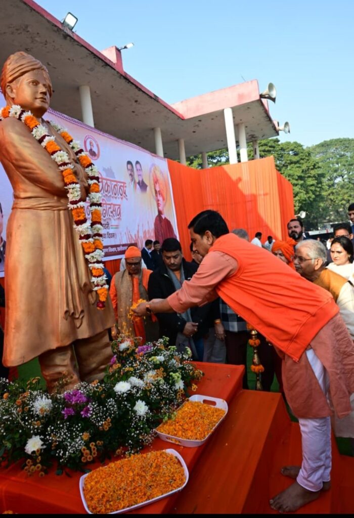 उप मुख्यमंत्री अरुण साव ने स्वामी विवेकानंद उद्यान स्कूली बच्चों को संबोधित करते हुए कहा कि, बिलासपुर में आज 1500 बच्चों ने स्वामी विवेकानंद जी की वेशभूषा में नशा मुक्ति की शपथ लेकर वर्ल्ड रिकॉर्ड बनाया है। उन्होंने कहा कि, स्वामी विवेकानंद जी ने दुनिया को भारत के आध्यात्म का परिचय कराया है। उन्होंने कहा कि, जो मनुष्य स्वयं पर नियंत्रण कर लेता है। वहीं दुनिया में महान होगा। मनुष्य वही है,जो स्वयं पर शासन कर सकता है। जिसमें आत्म संयम हो, आत्मनियंत्रण हो, आत्म अनुशासन हो, वहीं महान बनता है। उन्होंने कहा कि, सभी मिलकर एक बार फिर भारत की संस्कृति और अध्यात्म को दुनिया में फिर से पुनर्स्थापित करेंगे। यह जयंती संकल्प लेने का पावन अवसर है। सभी लोग भारत के अध्यात्म को दुनिया में फिर से स्थापित करेंगे।