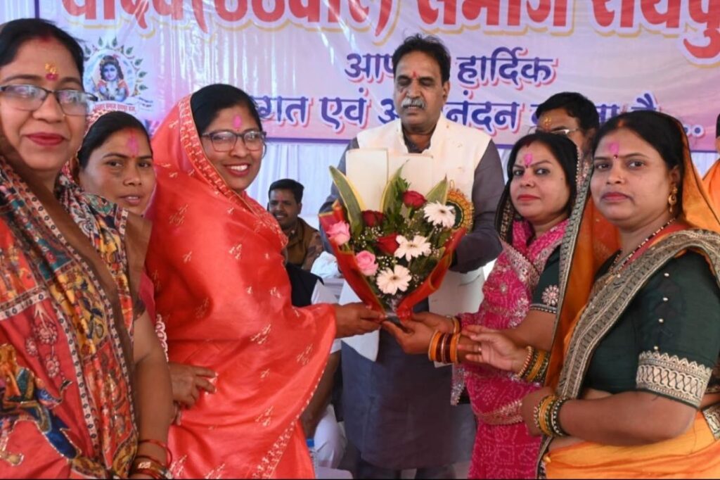 रायपुर। यादव (ठेठवार) समाज रायपुर राज का वार्षिक अधिवेशन महादेव घाट, रायपुरा, रायपुर में भव्य एवं गरिमामय रूप से संपन्न हुआ। इस अवसर पर बड़ी संख्या में गौ सेवकों, चरवाहा भाइयों एवं समाज के वरिष्ठजनों का सम्मान कर समाज द्वारा एक साहसिक और प्रेरणादायी पहल की गई। प्रदेश मीडिया प्रभारी शशिकांत यदु ने बताया कि सुबह 10 बजे भवन प्रांगण में वृक्षारोपण का कार्य ग्रीन आर्मी के प्रदेश अध्यक्ष श्री अमिताभ दुबे एवं रायपुर जिला अध्यक्ष श्री गुरदीप टुटेजा के सहयोग से संपन्न हुआ। तत्पश्चात सामाजिक ध्वजारोहण कर इष्टदेव श्री राधा-कृष्ण की पूजा-अर्चना की गई और जय यादव, जय माधव के जयकारों के साथ कार्यक्रम की क्रमवार शुरुआत हुई। सांस्कृतिक प्रस्तुति जस, झांकी एवं नाचा ने दर्शकों का मन मोह लिया। 17 पार से आए चरवाहा भाइयों, बुजुर्गों और 17 पार अध्यक्ष एवं सभी पदाधिकारियों को फूल-माला, मोमेंटो और प्रशस्ति पत्र देकर सम्मानित किया गया।
