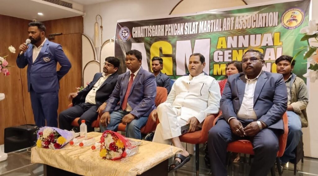 बिलासपुर—- दिनांक 18 जनवरी 2026 को बिलासपुर के होटेल बंसीवाला मे छत्तीसगढ़ पेंचाक सिलाट मार्शल आर्ट संघ की वार्षिक बैठक संपन्न हुई बैठक में महासचिव शेख समीर द्वारा गत वर्ष की कार्य गतिविधि की जानकारी दी गई एवं आगामी वर्ष की कैलेंडर जारी की गई बैठक में प्रदेश के मुख्य कार्यकारिणी एवं 14 जिले के अध्यक्ष सचिव ने भाग लिया! बैठक में उपस्थित प्रदेश कार्यकारिणी इस प्रकार है चेयरमेन