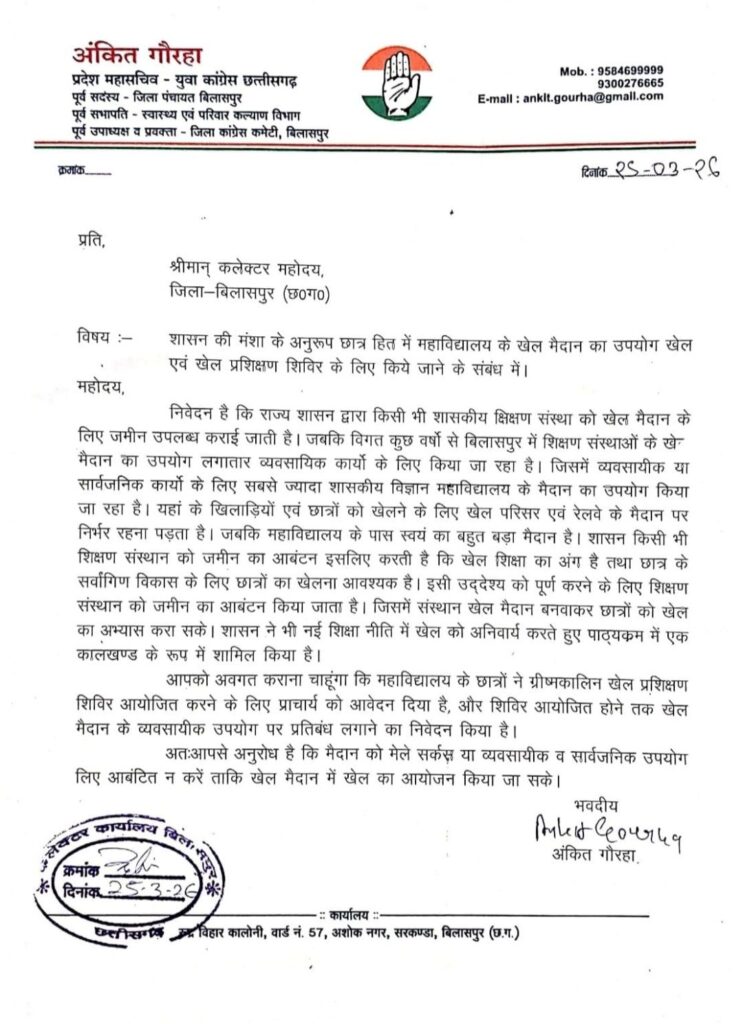मामले ने तब और तूल पकड़ा जब कांग्रेस नेता अंकित गौरहा ने इस मुद्दे को उठाते हुए जिला कलेक्टर को ज्ञापन सौंपा। उन्होंने साफ शब्दों में कहा कि महाविद्यालय की परिसंपत्तियों पर पहला अधिकार छात्रों का है और इसमें किसी भी प्रकार की लापरवाही स्वीकार नहीं की जाएगी।