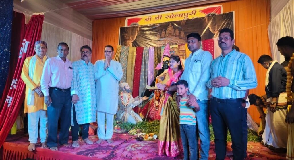 बिलासपुर —- श्री श्री सोलापुरी माता पूजा समिति सिरगिट्टी बिलासपुर द्वारा आयोजित भव्य पूजा महोत्सव में आज मां तुलजा स्वरूप के छत्तीसगढ़ युवा आयोग के पूर्व सदस्य रविन्द्र सिंह ठाकुर जी ने पूजा अर्चना आरती पश्चात भोग ग्रहण किया। बिलासपुर जिला शहर कांग्रेस कमेटी के पूर्व अध्यक्ष रविन्द्र सिंह जी ने श्रद्धालुओं को नवरात्रि व रामनवमी की शुभकामनाएं देते हुए कहा की मां सोलापुरी आपके परिवार को शुभ शांति समृद्धि प्रदान करें।आप सभी निरोगी रहे। यही माता रानी से प्रार्थना करता हूं। आरती पश्चात आज लक्की ड्रा का सफल आयोजन किया गया। जिसमें विजेता इस प्रकार रहे: